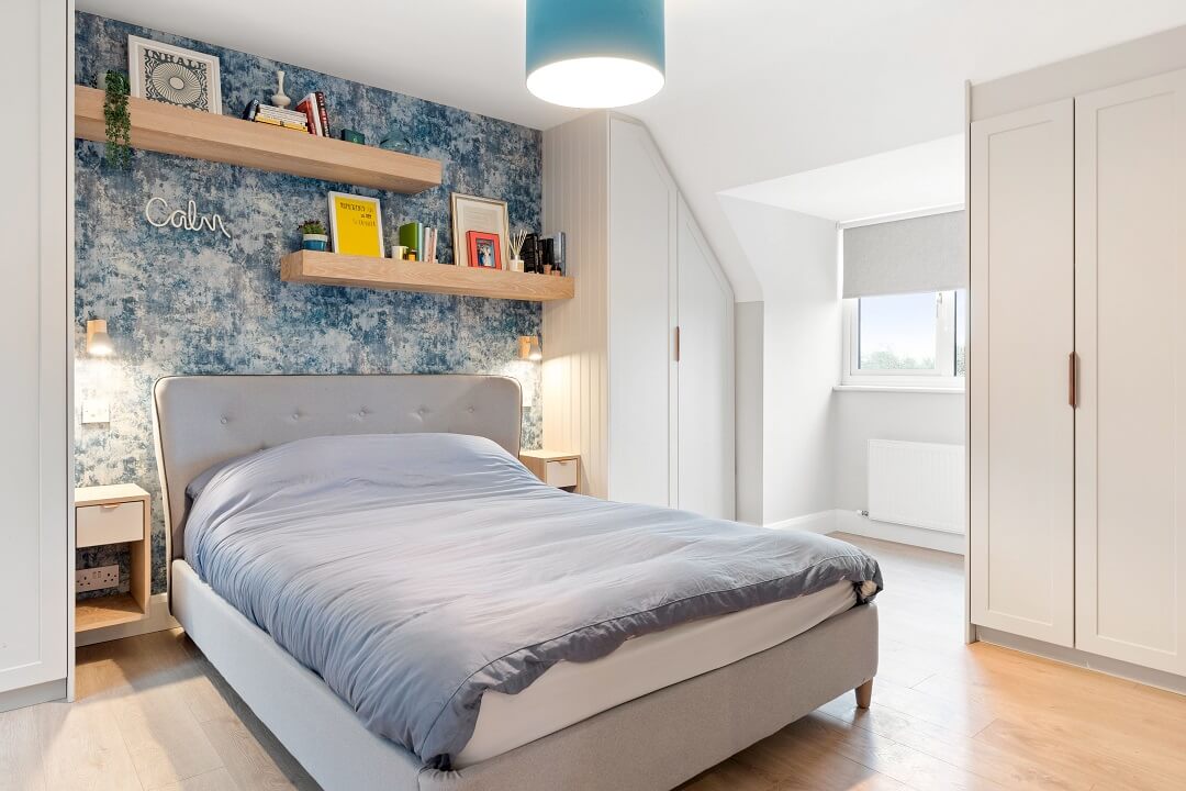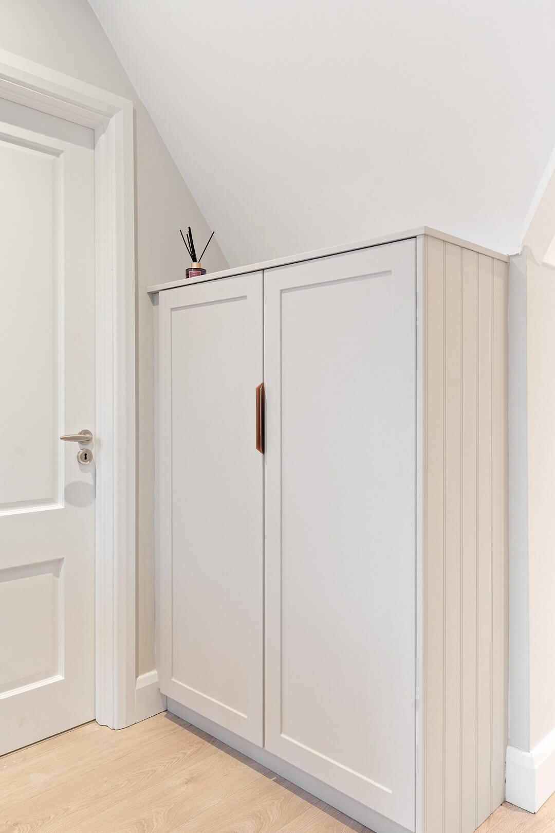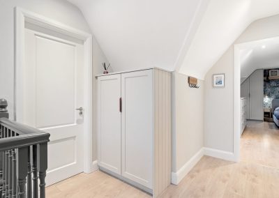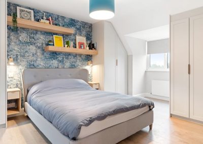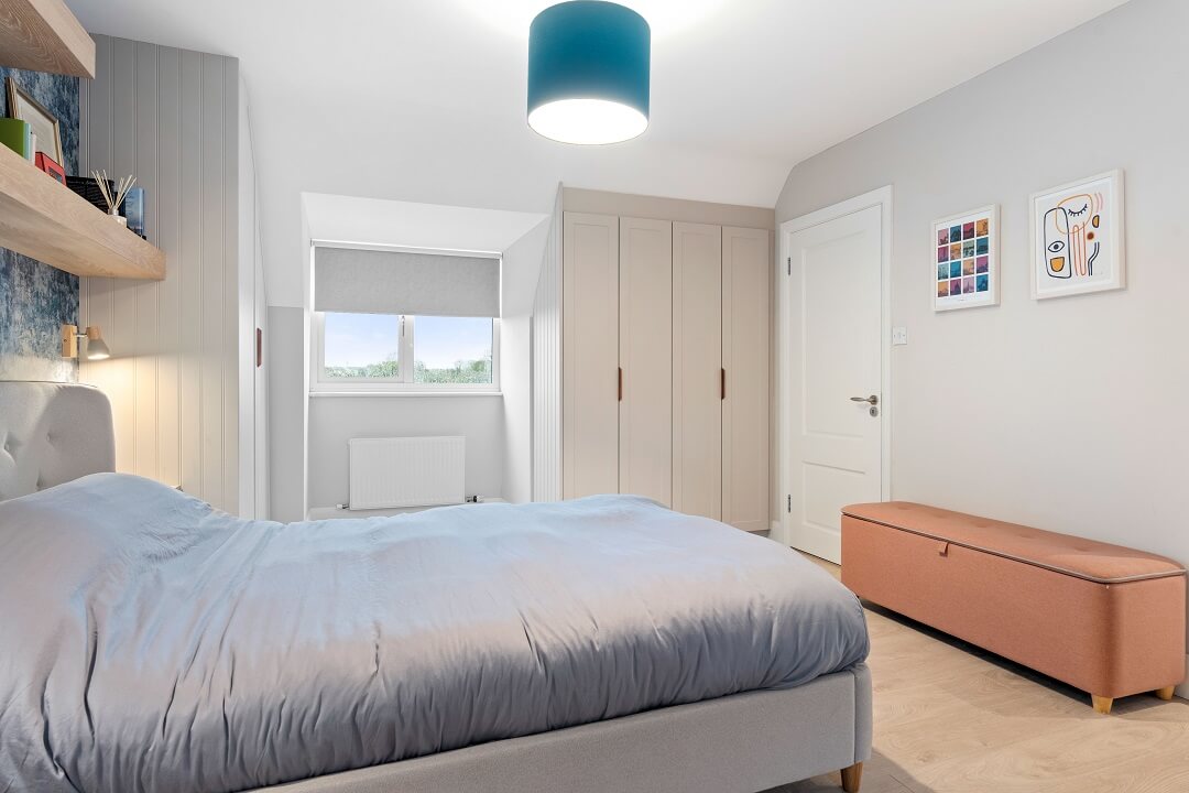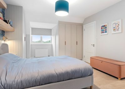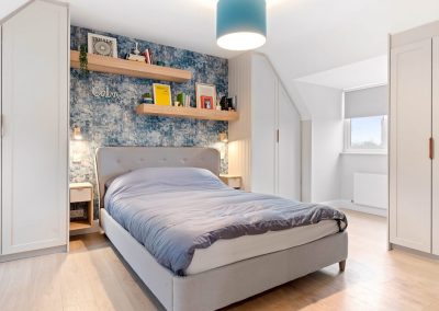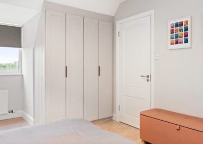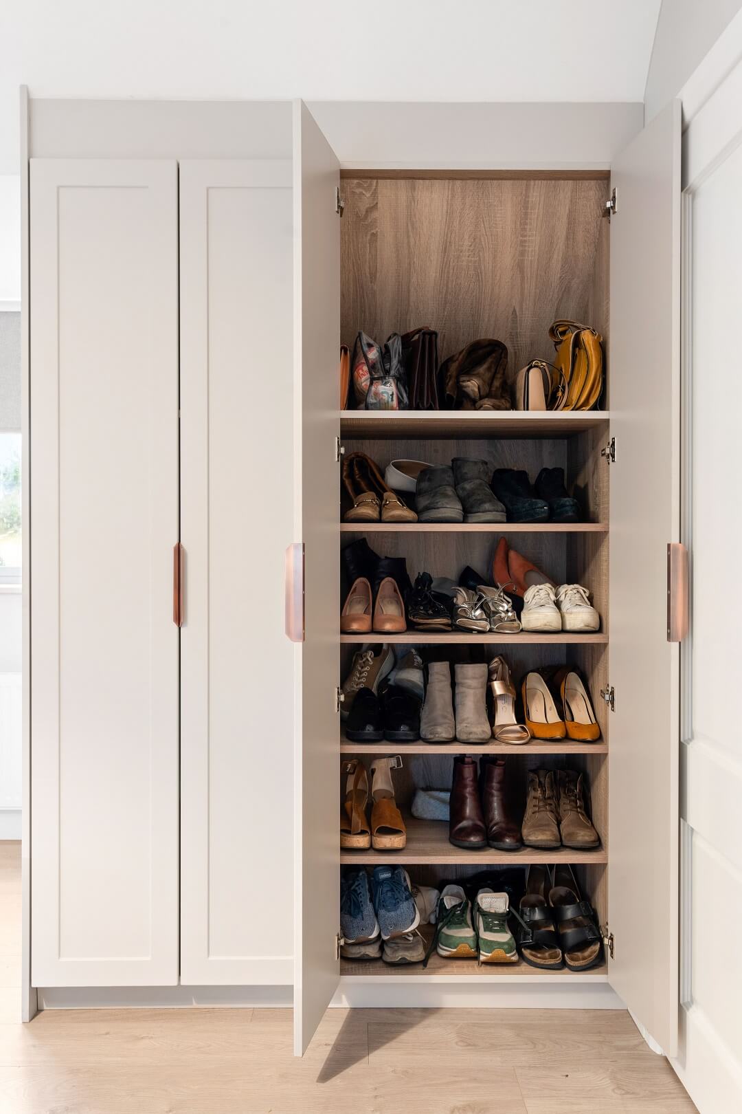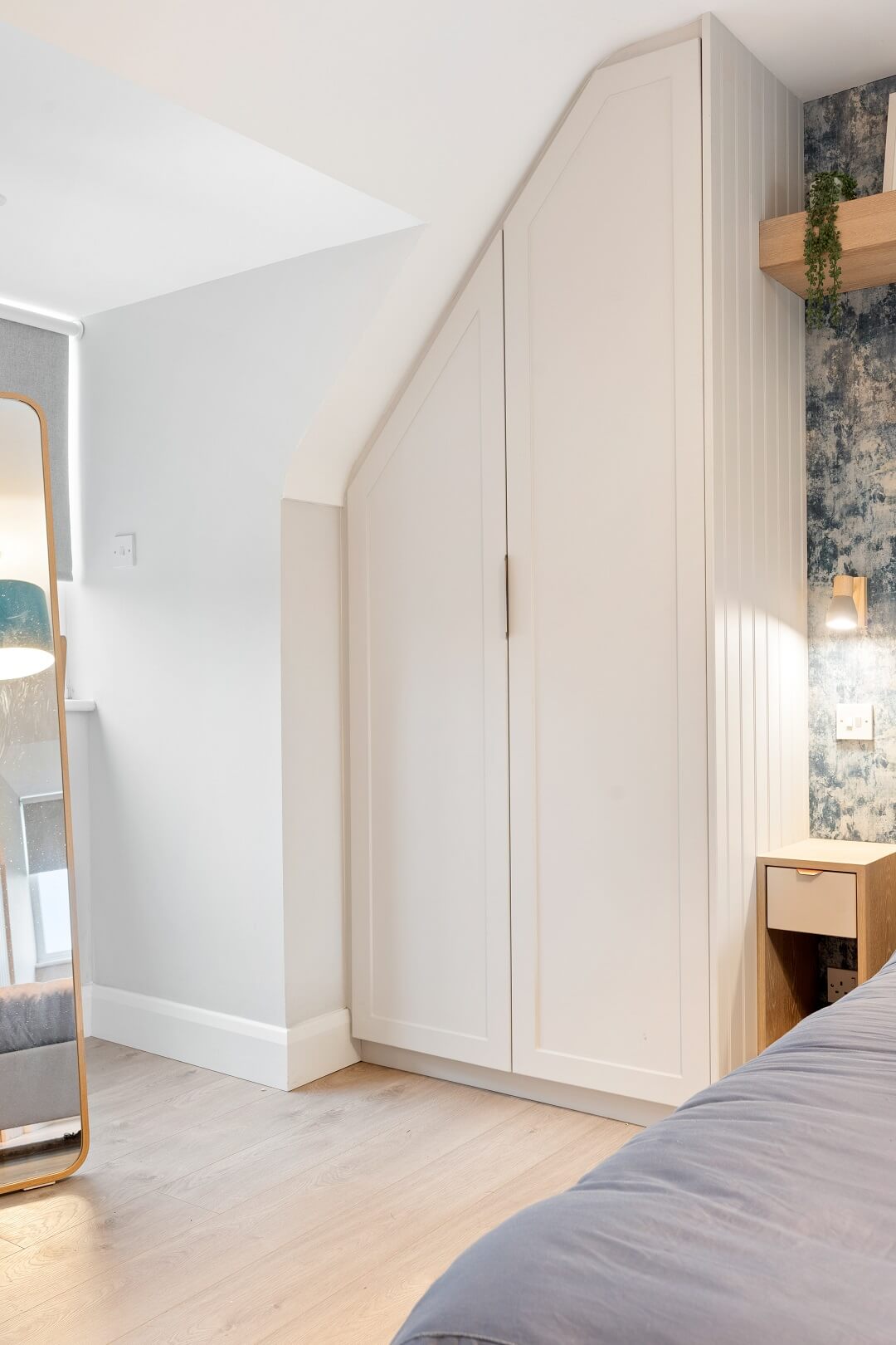 We love these angular wardrobes and many other clients have used them since to fill awkward spaces. The capacity in this space has increased exponentially after an influx of our smart storage solutions and space-savers.