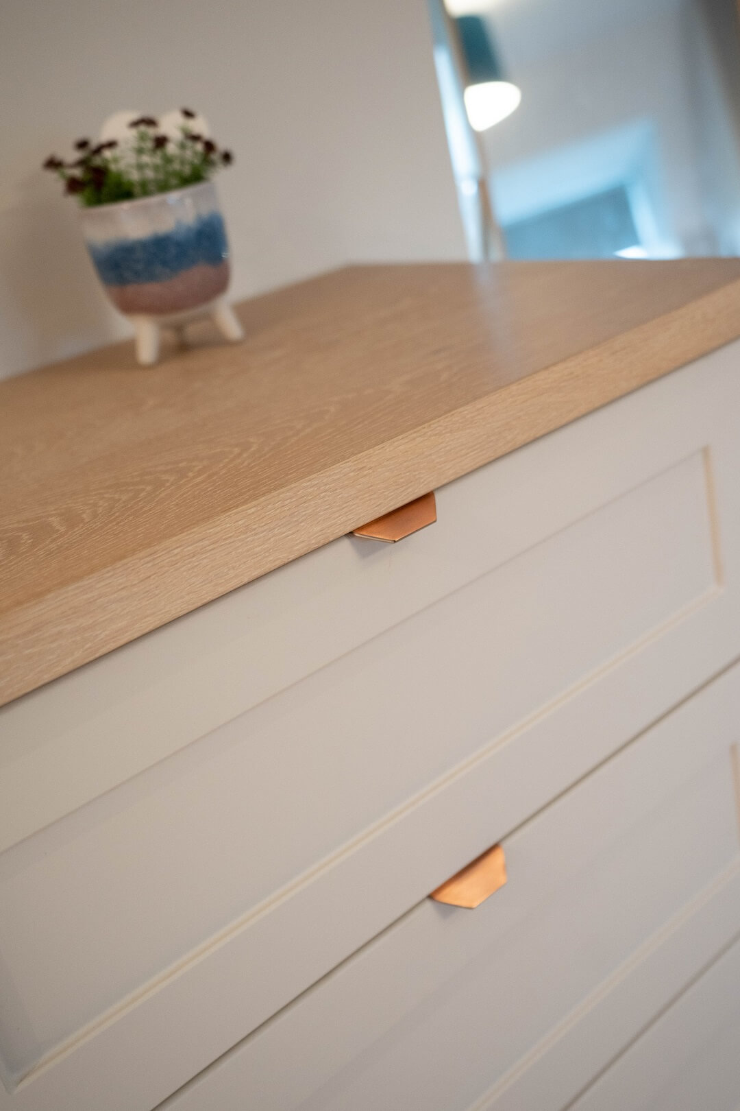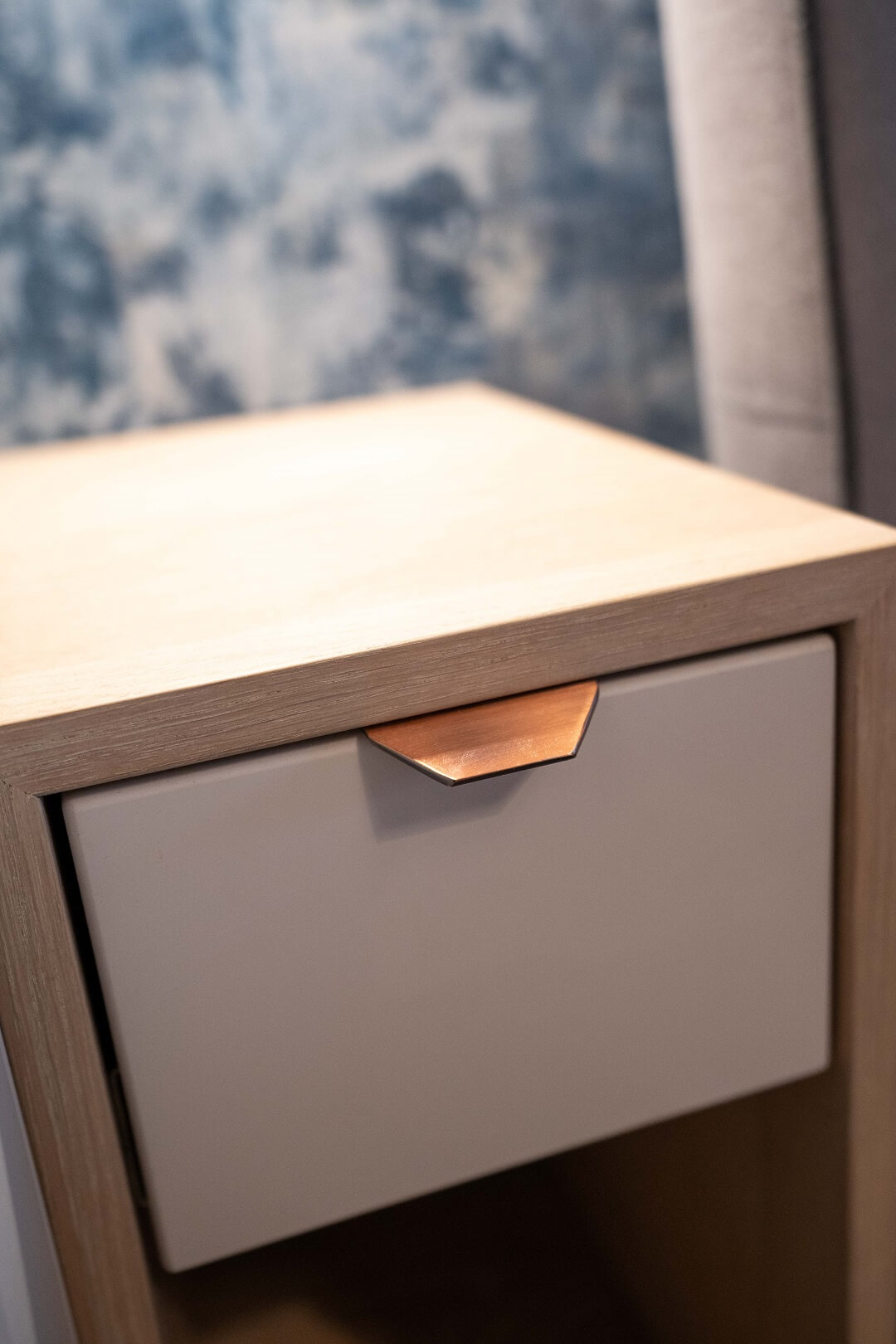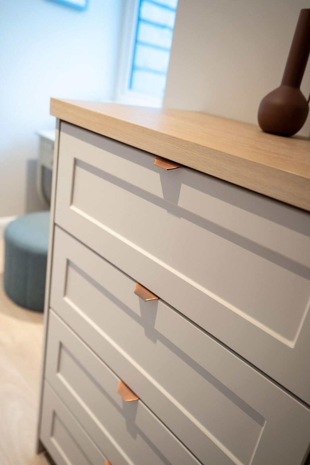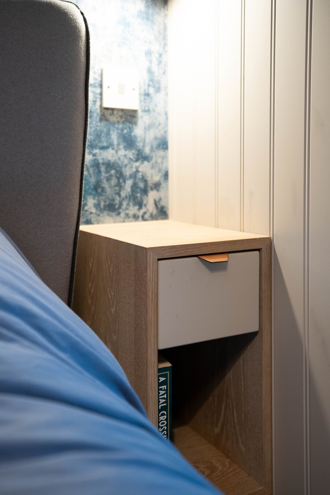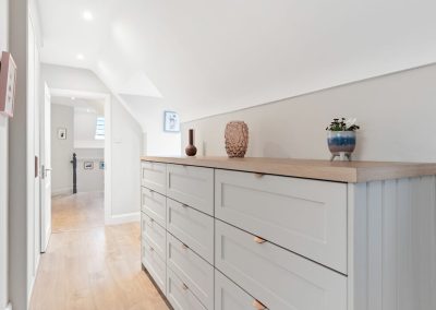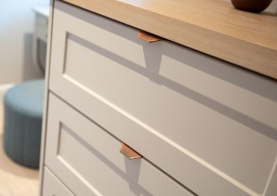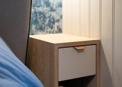 “I love the seaside vibe in this room. Ian’s storage solutions are really clever. It has really cleaned up the space – all of the storage is so smart and hidden very well.”