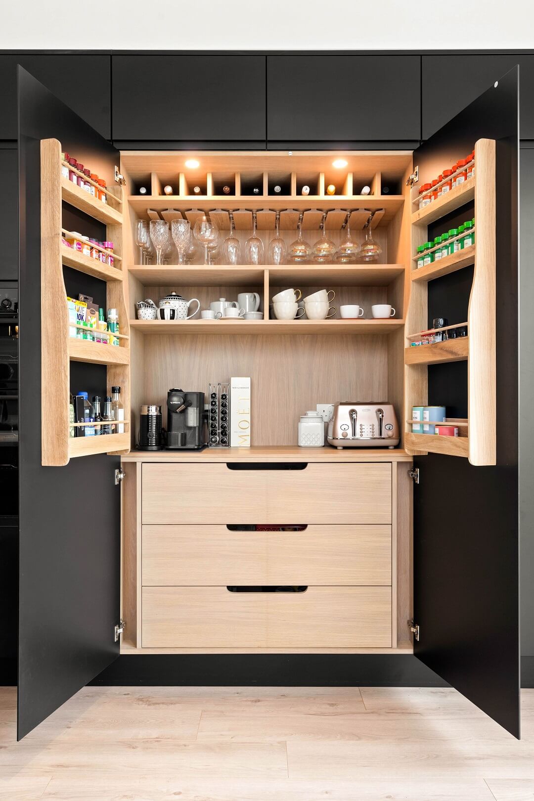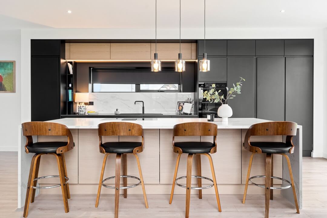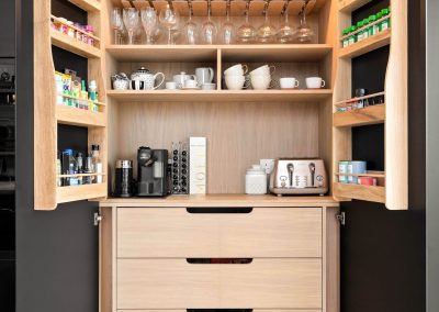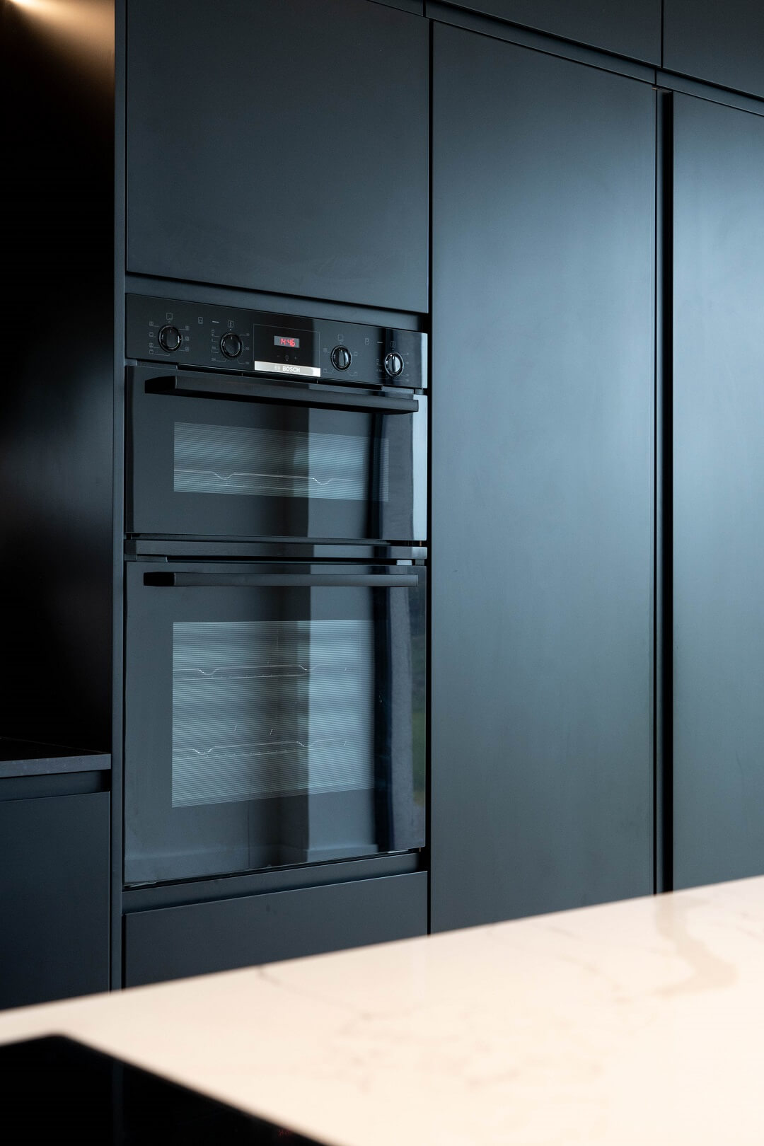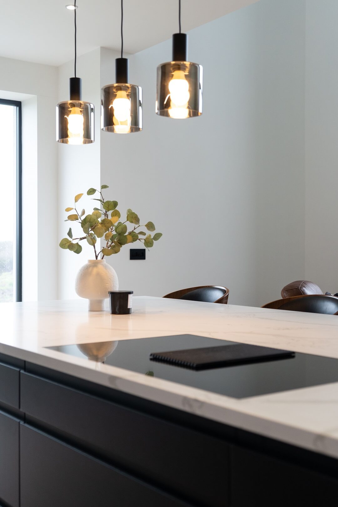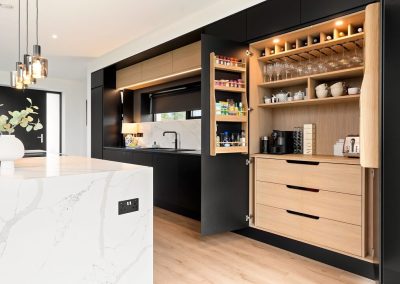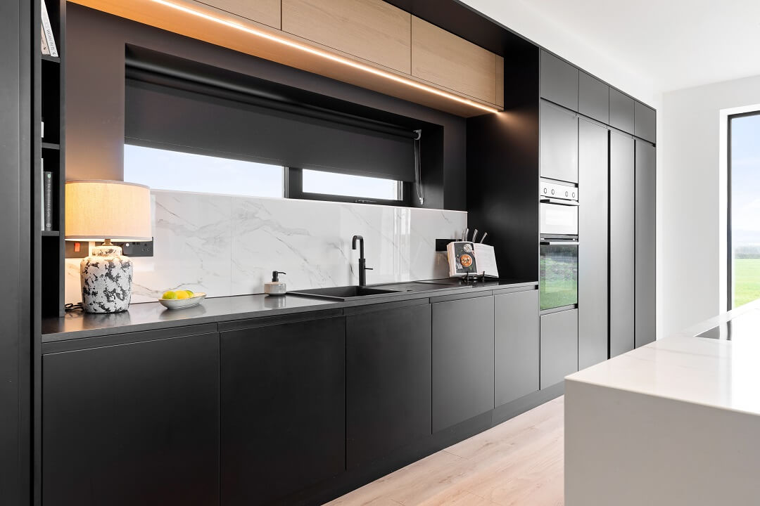 Here we had a young couple moving home from the west coast of the USA to build a home for their family. The design featured flat roofs, large picture windows throughout and a huge open-plan feel. The whole concept was truly stunning on paper and the kitchen, being one of the focal points of the whole build, needed to follow suit. Our clients came to us with plenty of ideas and examples they’d gathered and we really enjoyed the design stage of this project. The results speak for themselves.