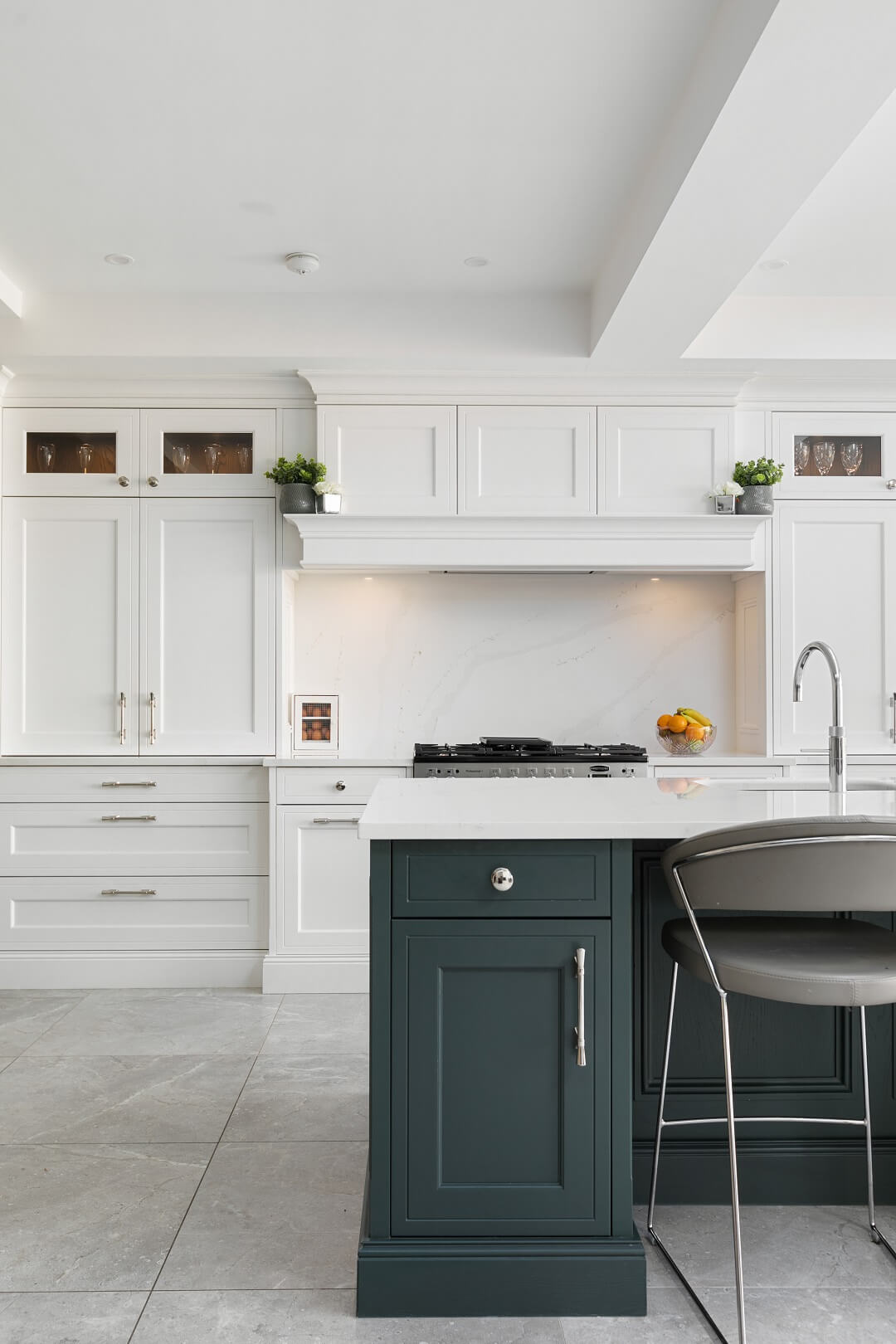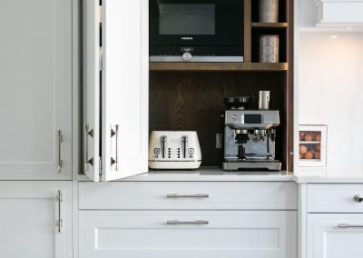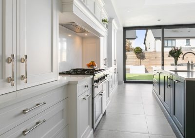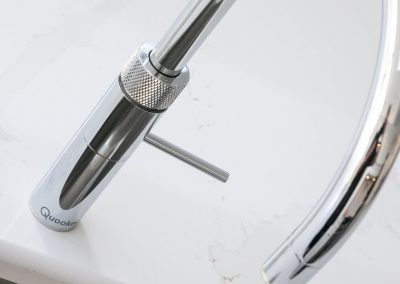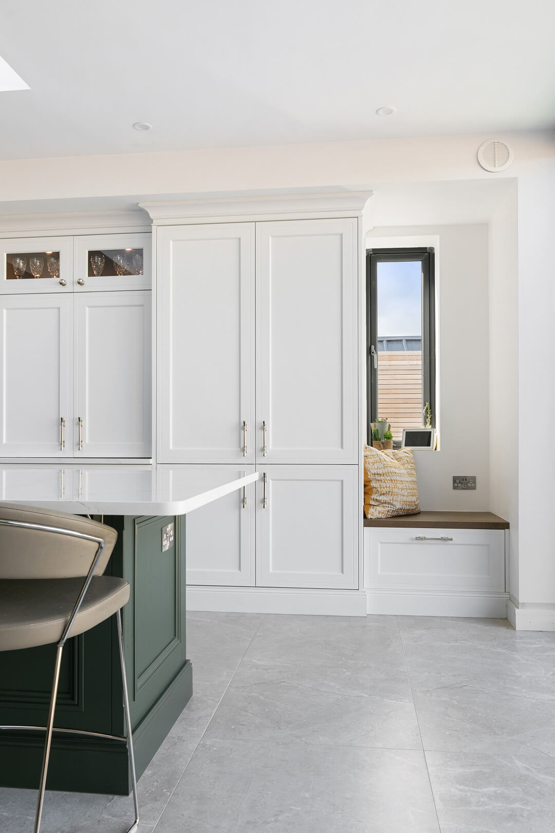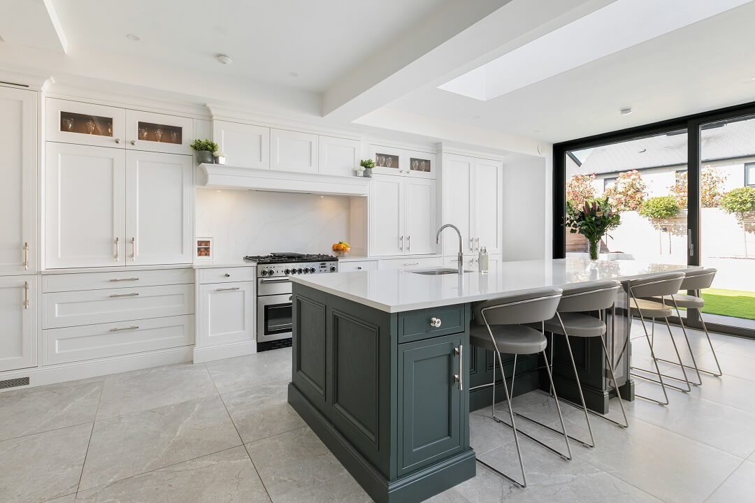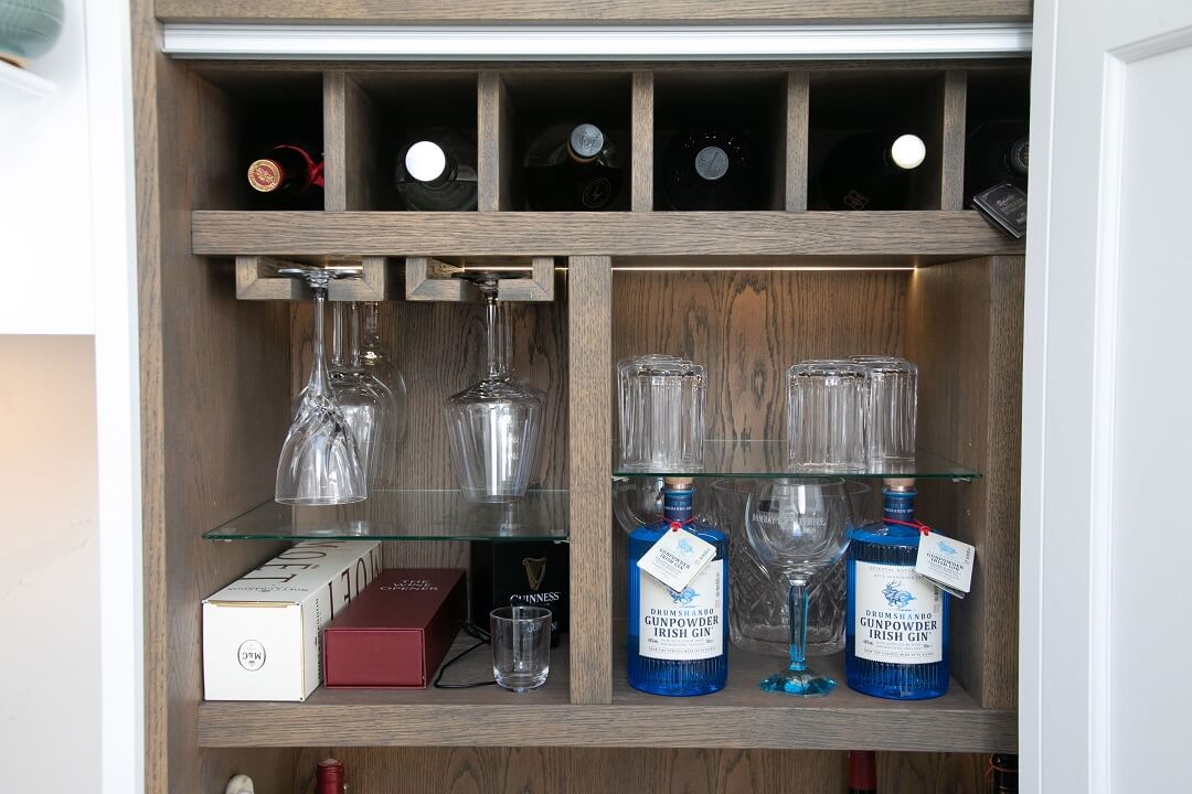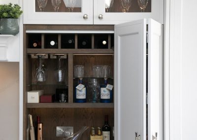 This projected married functionality, innovation and style. Light floods this space during the day and the deep green island amplifies the lighter colours elsewhere. We love the wine cooler and drinks area – essentials!
