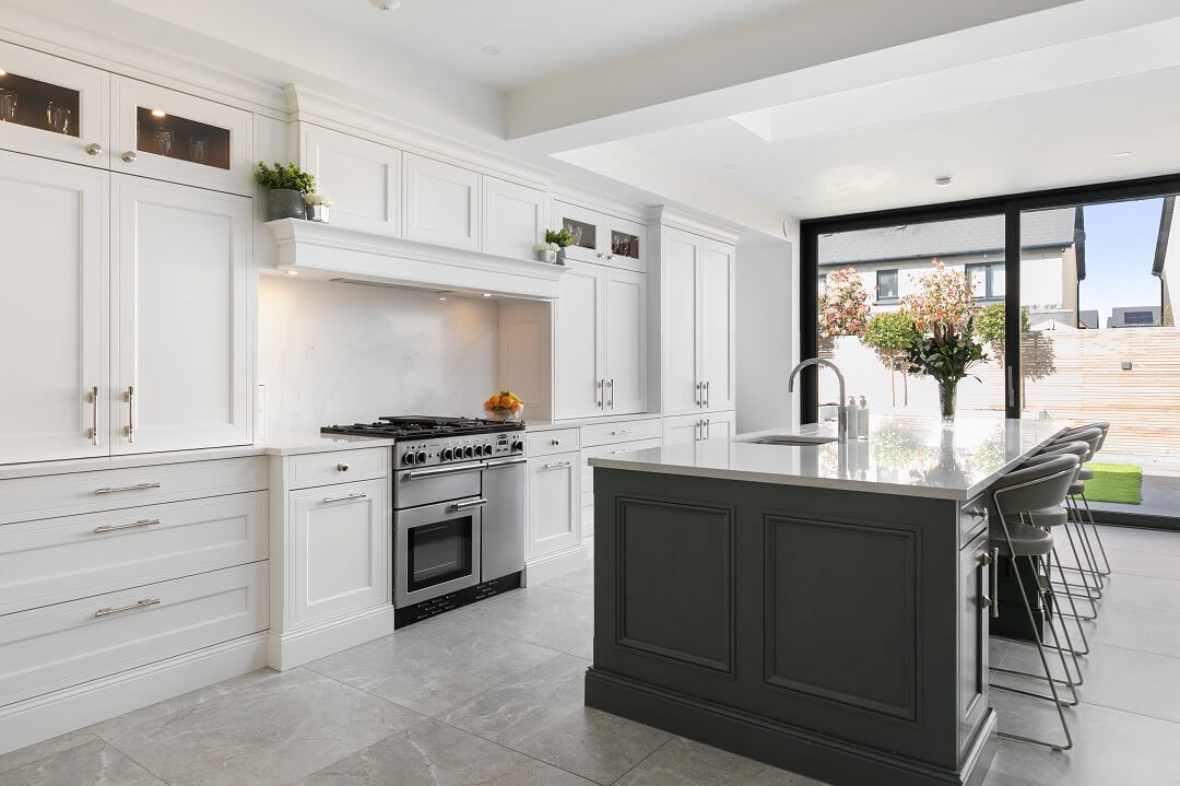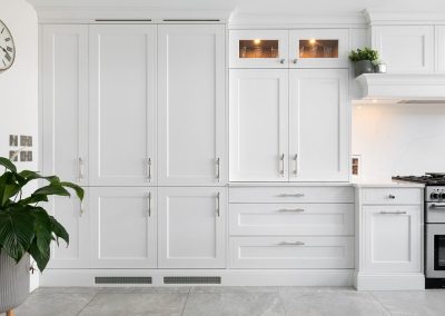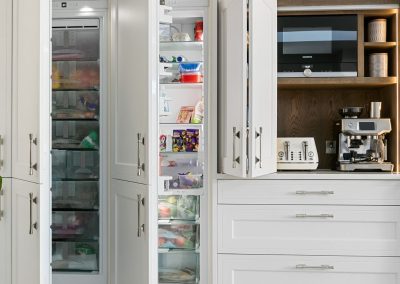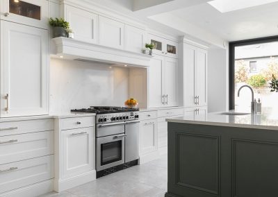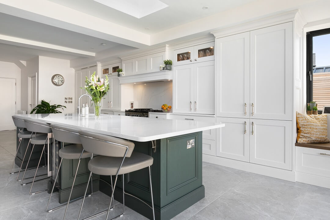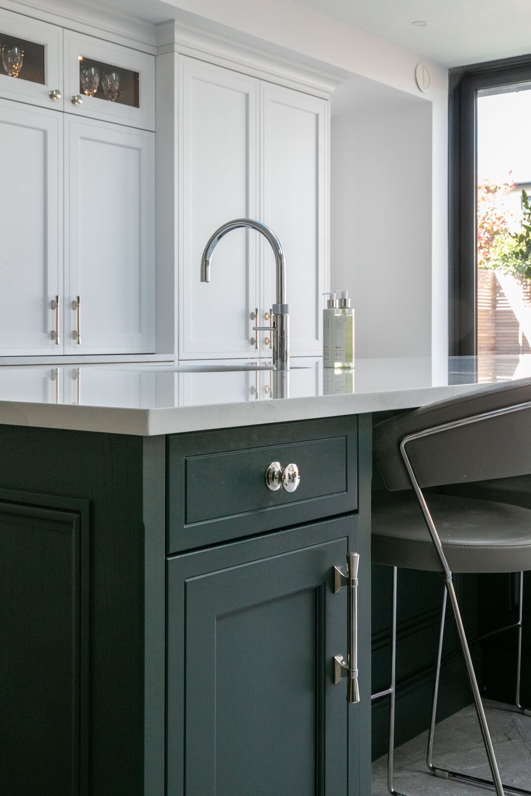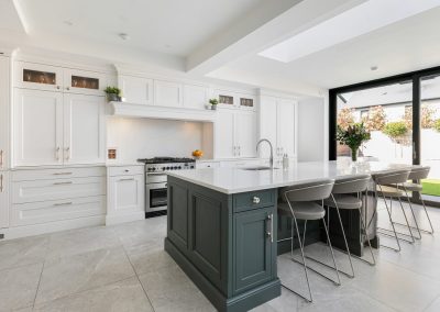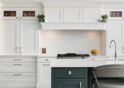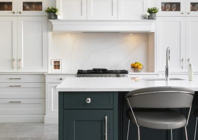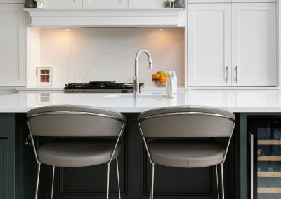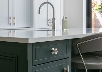 “I am in love with the island and bi-folding dresser units. What Ian was able to do with the space available was almost magic, and I adore the deep green we used.”