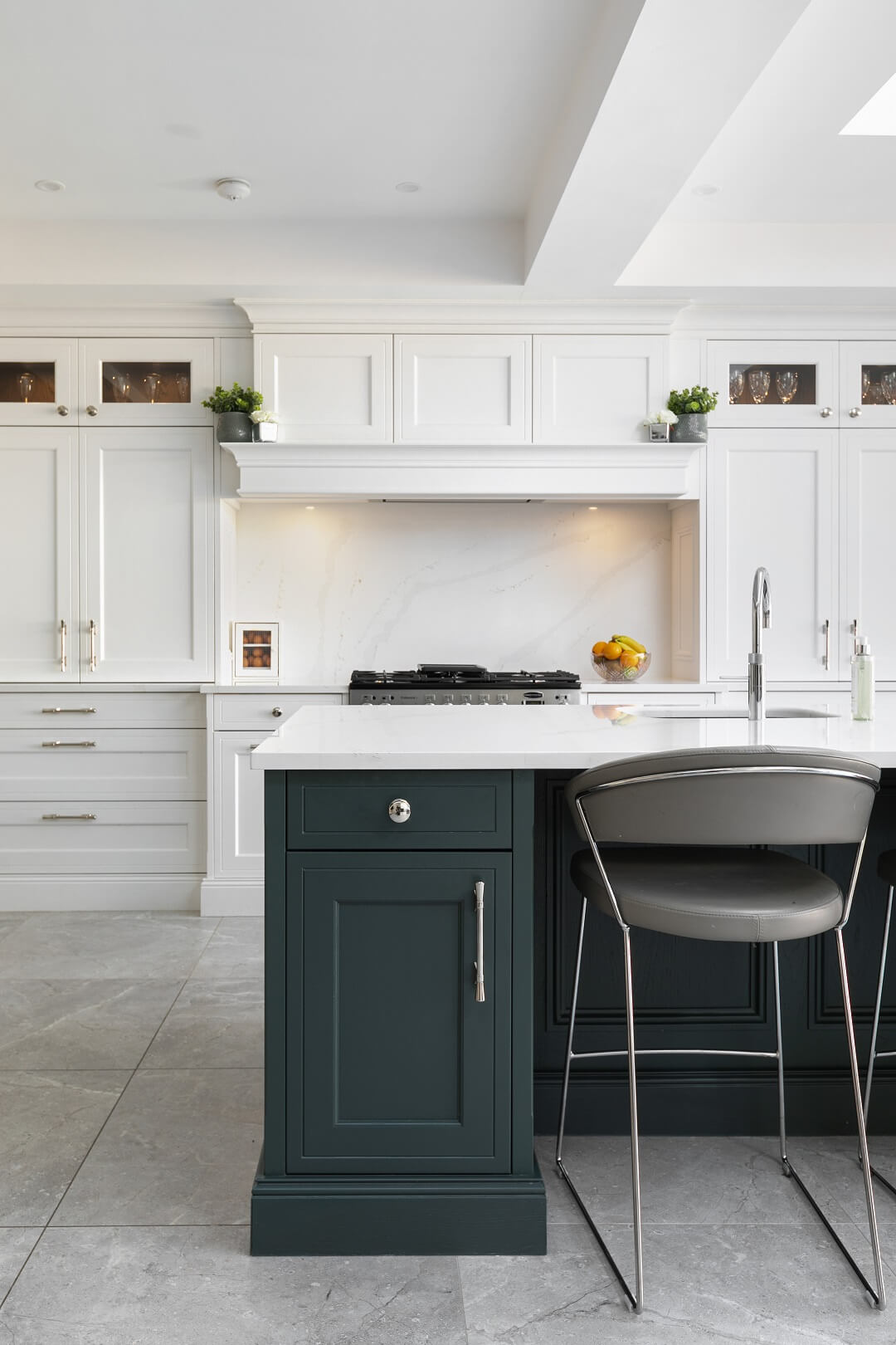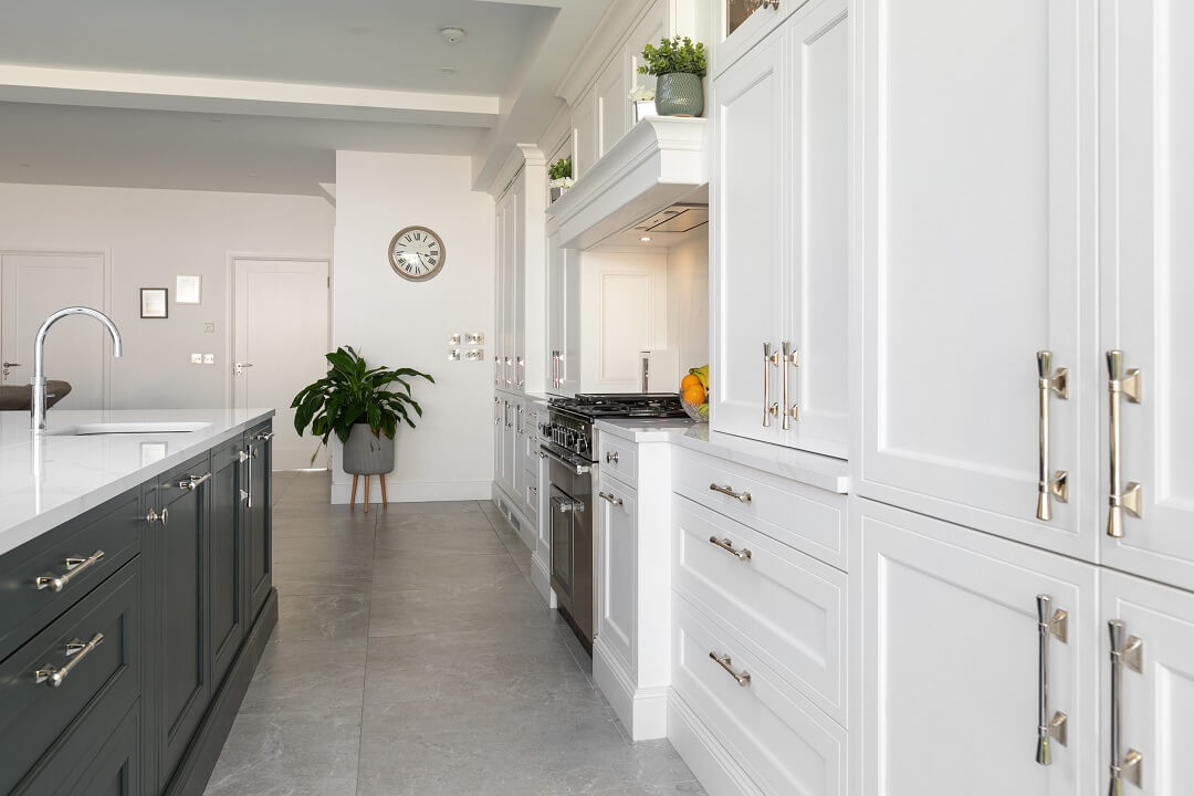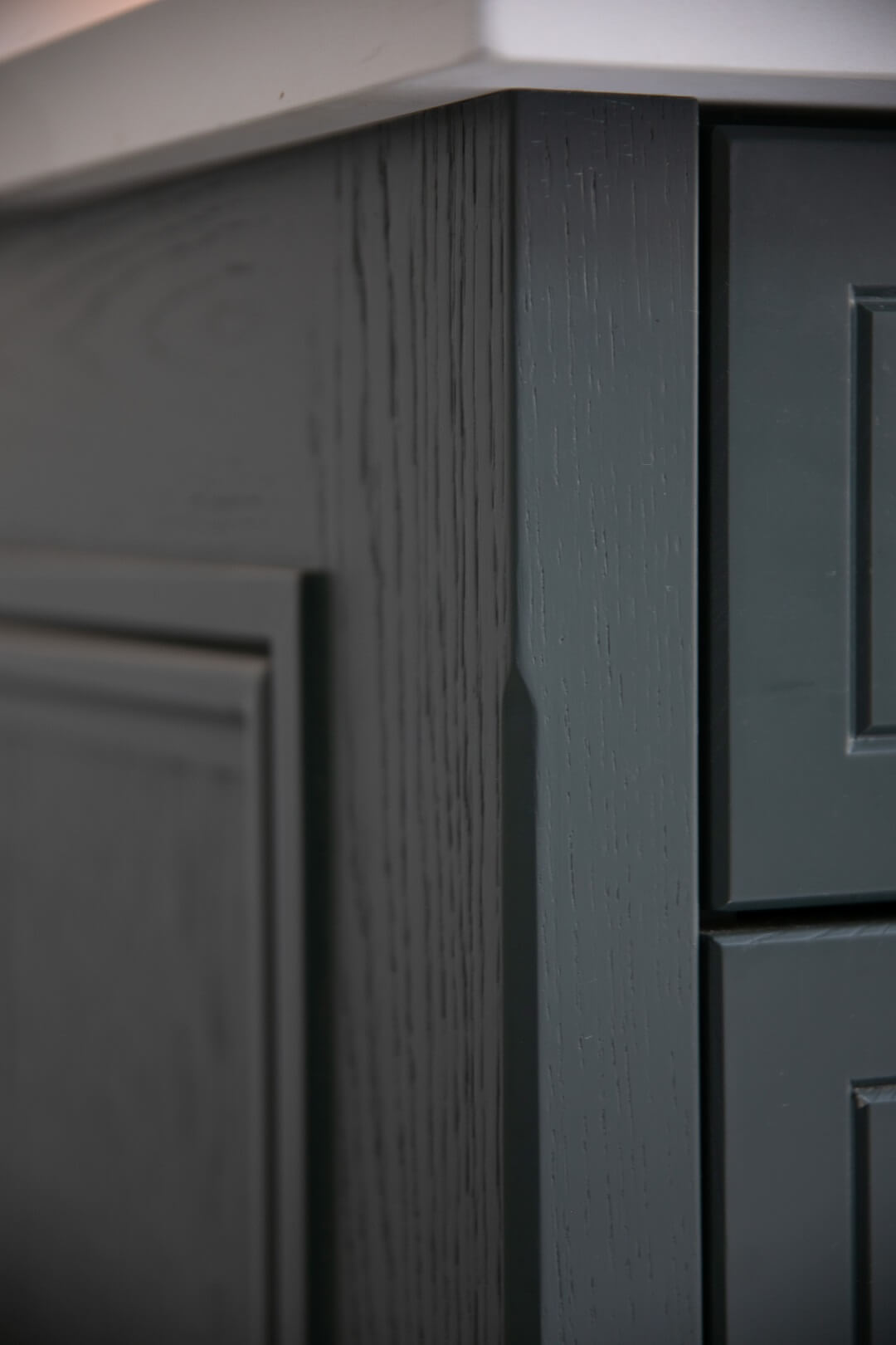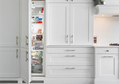 “I am in love with the island and bi-folding dresser units. What Ian was able to do with the space available was almost magic, and I adore the deep green we used.”